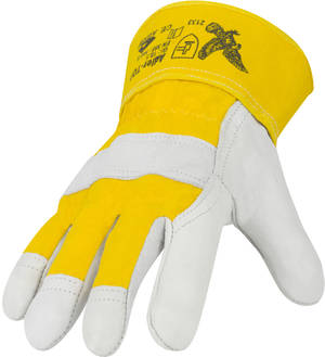 Handrücken und Stulpe aus gelbem Canvas