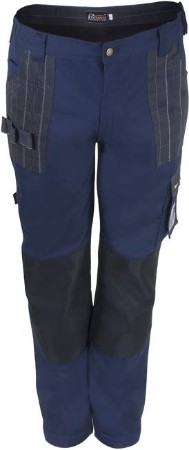 - zwei Beuteltaschen, zwei Gesäßtaschen, eine Beintasche mit Druckknopfverschluss, aufgesetzter Handytasche und Visitenkartentasche, eine Zollstocktasche, eine Stiftlasche